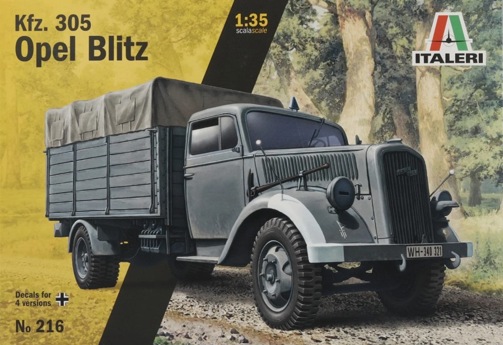 O caminhão médio Opel Blitz foi amplamente utilizado pelo exército alemão em todas as frentes da Segunda Guerra Mundial. Fabricado em vários milhares de exemplares, também foi utilizado como plataforma para armas antiaéreas e também nas versões: tanque, oficina, ambulância. De construção robusta e de fácil manutenção, apresentava boas características off-road que lhe permitiam operar tanto nos desertos russos como nos desertos africanos. O KIT CONTÉM, ALÉM DO VEÍCULO, 2 MINIATURAS.